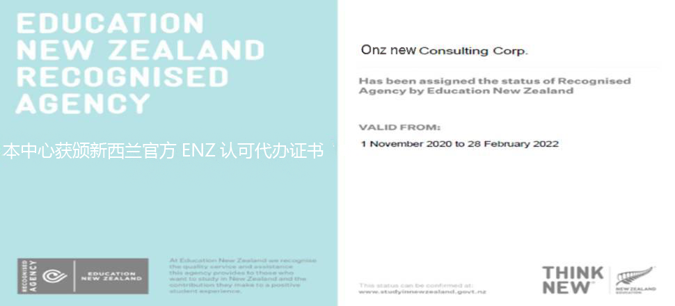 通过纽西兰政府考核, 获颁新西兰官方ENZ认可代办 (ENZ Recognised Agency)