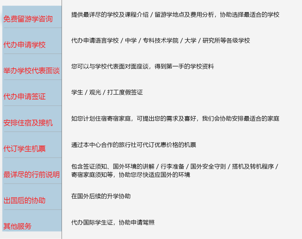 » 一站式代办服务全覆盖:院校申请 / 签证代办 / 住宿 & 机票安排 / 后续跟进支持