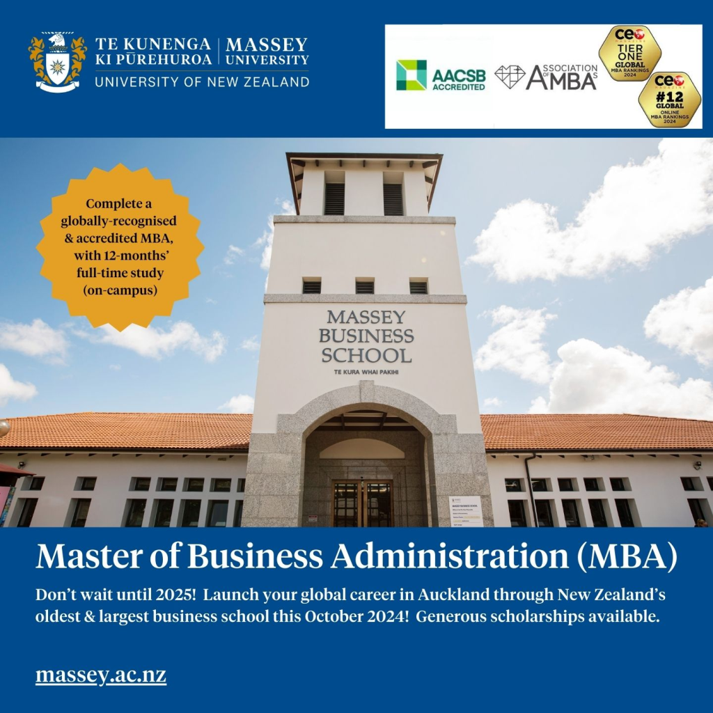 紐西蘭歷史最悠久、規模最大的商業學校-Massey Business School 2024夏季MBA招生開放中!!! 現在就申請!