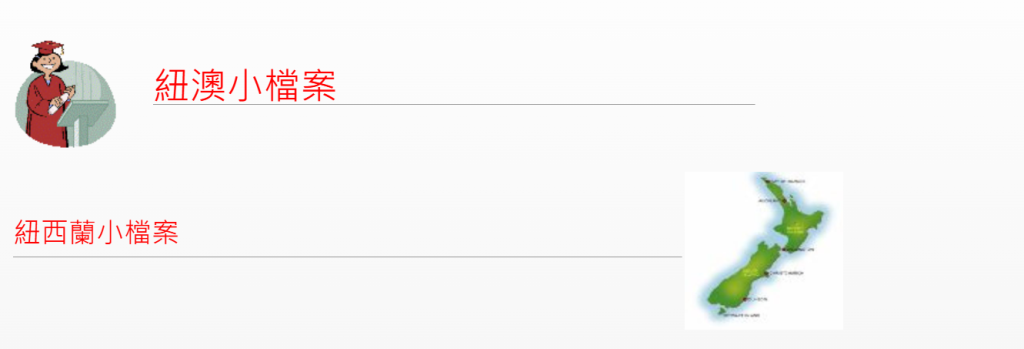 | 景觀 | 分北島及南島, 有壯闊的山脈/冰河/湖泊/峽灣/螢火蟲洞等自然景觀 |